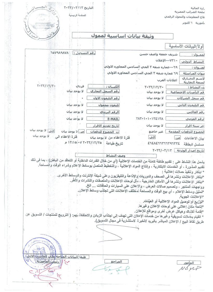 بطاقة ضريبية: انظر الصورة ادناه
