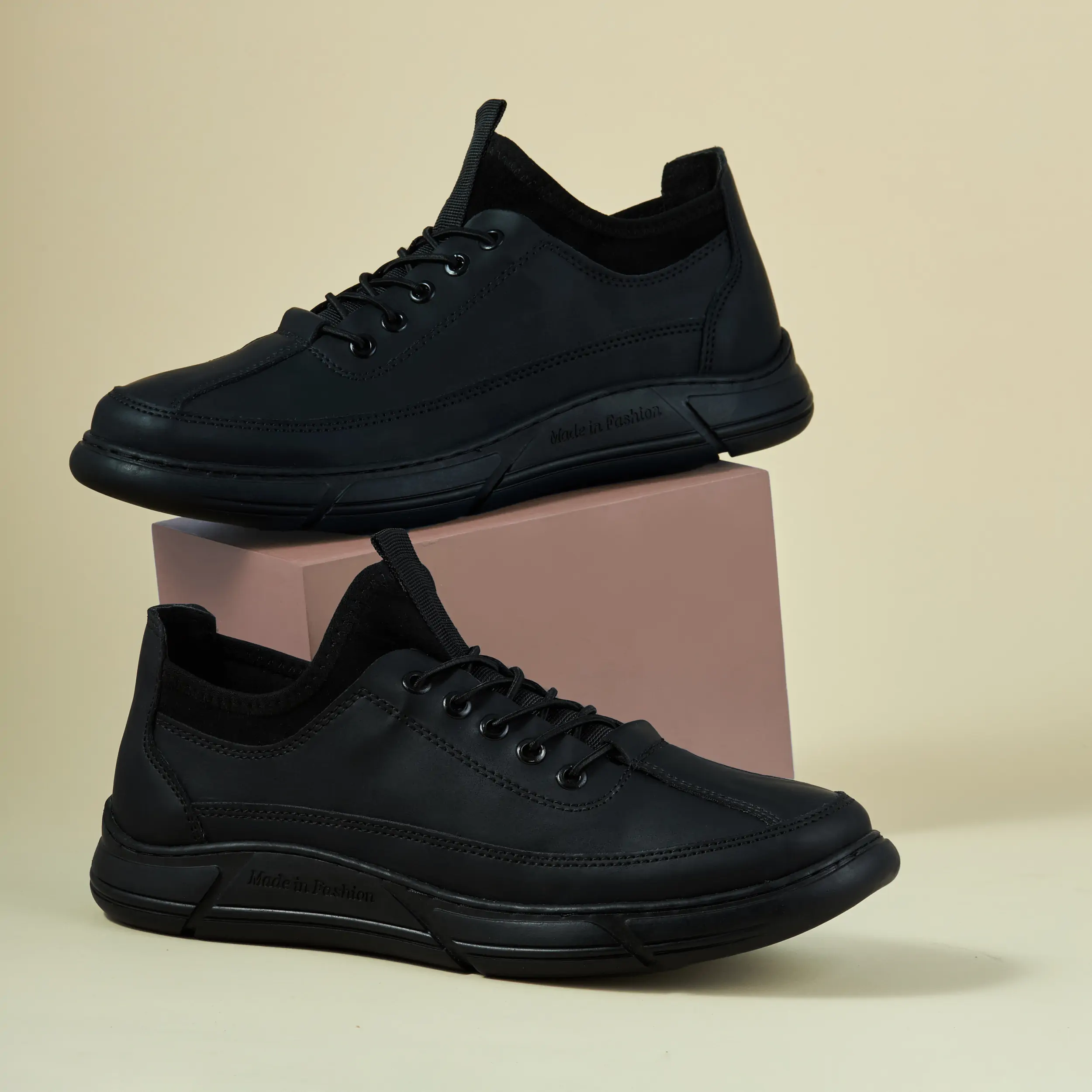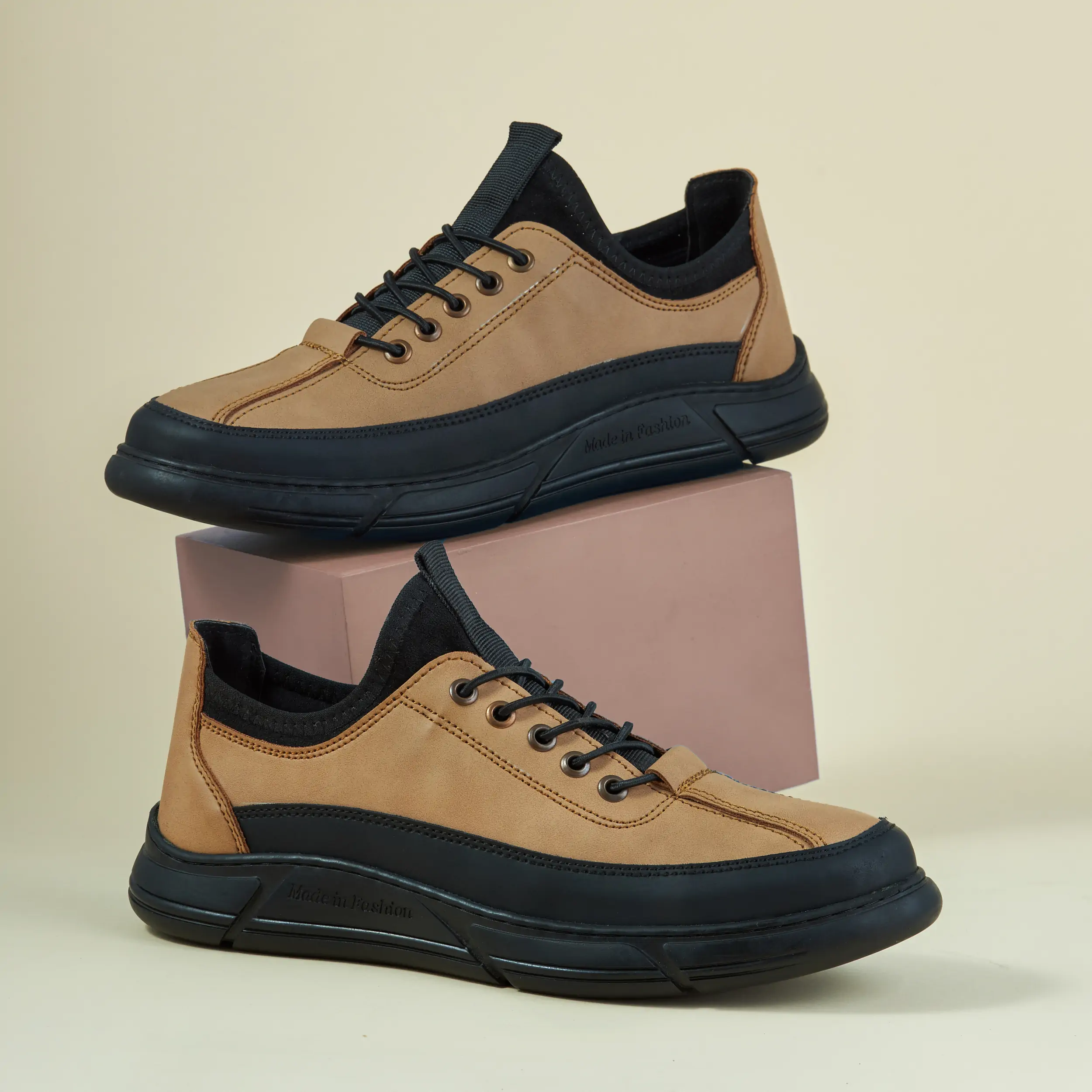 - النعل خياطة ولصق علشان يكون عملي ويتحمل في المشي.