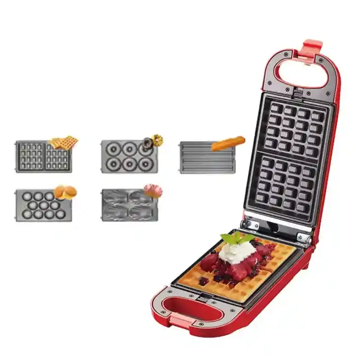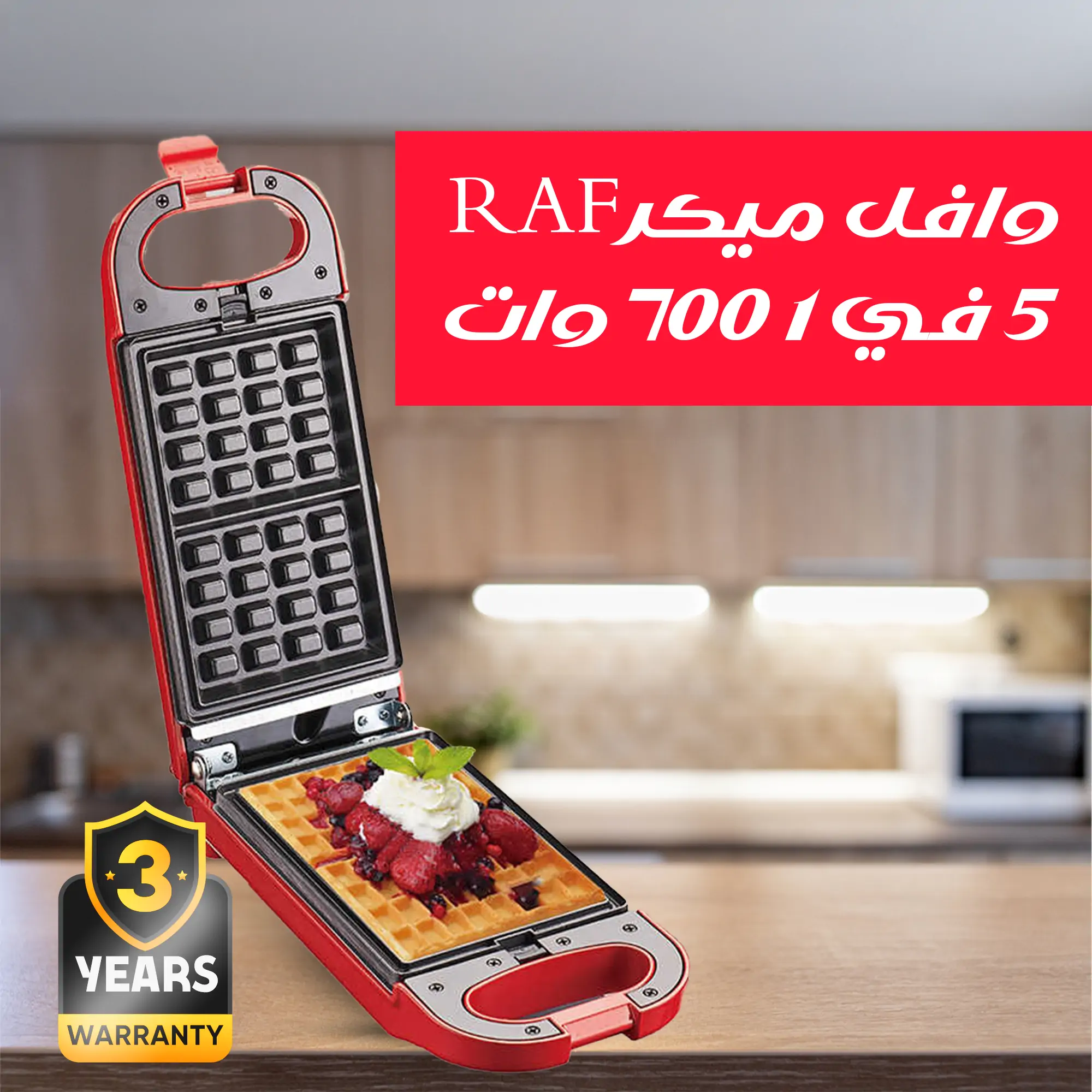 - 5 استخدامات في جهاز واحد: موفر للمساحة والتكلفة، يجمع بين صنع الوافل، السندوتشات، البيض، التسخين، والشوي.