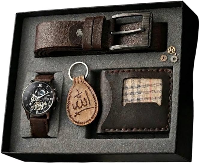 المحتار في هدية شيك تجمع بين الفخامة والعملية مش هيلاقي أحسن من الطقم ده عشان يرفع الراس في أي مناسبة 🔥 ساعة يد كلاسيك بمينا تخطف العين وسوار جلد مريح جداً ومعاها تشكيلة إكسسوارات كاملة زي الحزام والميدالية وحافظة الكروت عشان تكمل شياكتك ✨ الطقم بييجي في علبة هدايا فاخرة وتصميمه بيناسب لبس الشغل أو الخروجات الرسمية وكمان متاح بأشكال وألوان كتير تناسب ذوقك الخاص 💎 اطلب الطقم دلوقتي واضمن أشيك إطلالة ليك أو لأغلى حد عندك قبل نفاذ الكمية ✅